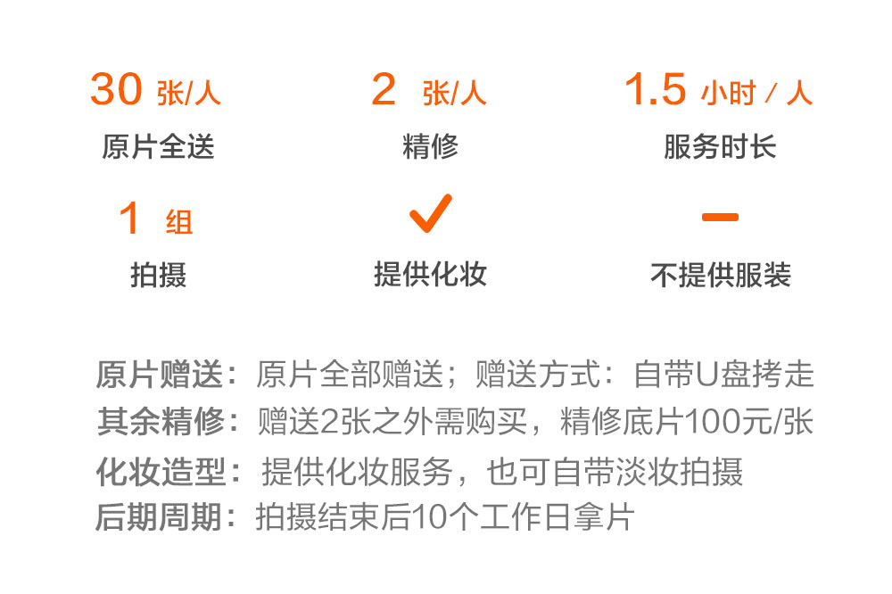 10个工作日内交付精修照片。